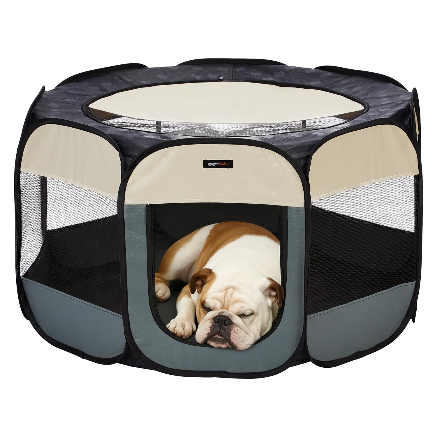 AmazonBasics Foldable Soft Pet Playpen Indoor Pet Fence Enclosure with Mesh Window, Lightweight and Durable for Travel, Medium | 91cm x 91cm x 51cm