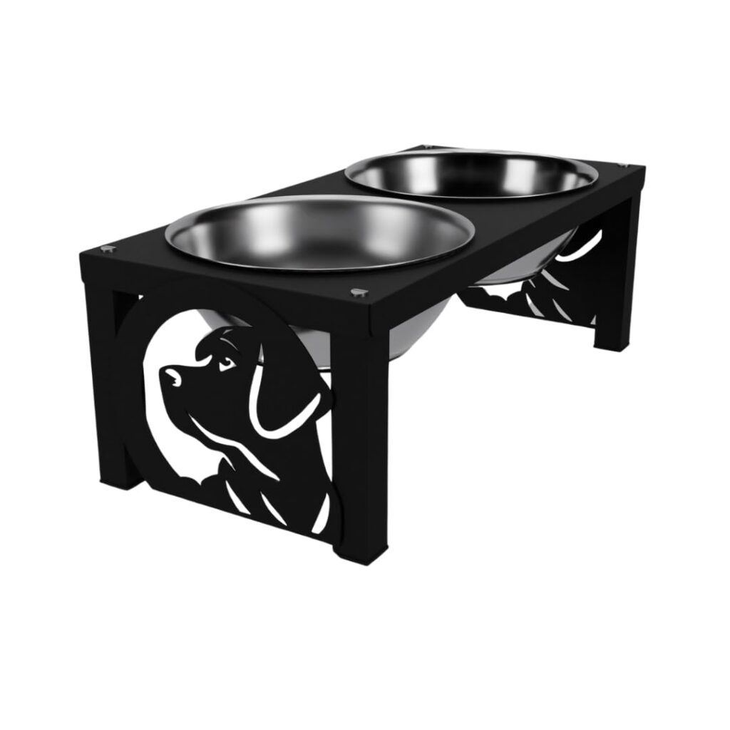 • Crafted with extra rubber support and a sturdy H-base; includes two removable stainless steel bowls.