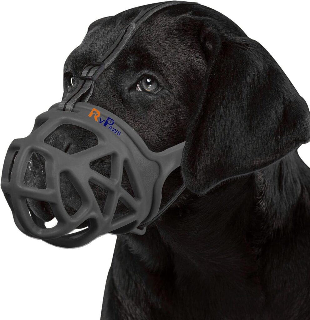 Pups&Pets Dog Muzzle, Breathable Basket Muzzles for Stop Biting, Barking and Chewing, Best for Aggressive Dogs Black Color (Large)